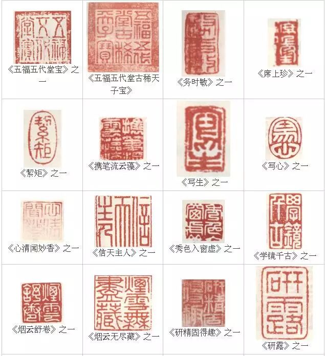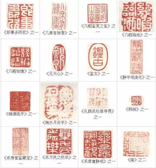 說到乾隆皇帝有多少印章,很多人可能會想起一張廣為流傳的《乾隆印跡》圖(如下)。這張圖上的印全嗎?嗬嗬還差遠啦。乾隆皇帝的印章多到你難以想象,不信?往下瞧瞧!
