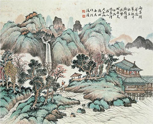 陸小曼 設色山水 鏡心