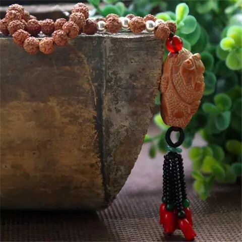 民間多以桃核雕刻,穿孔系掛在身上作為“辟邪”之用。有製成佩件、扇墜、串珠等為文人清玩。