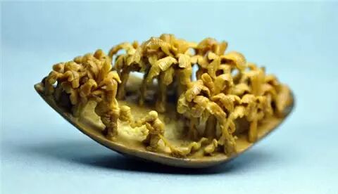 果核,在一般人的眼裡,是品嚐鮮果後的棄物,可這一枚枚小小的果核(桃核、杏核、橄欖核)到了微雕師的手中,就會化腐朽為神奇。