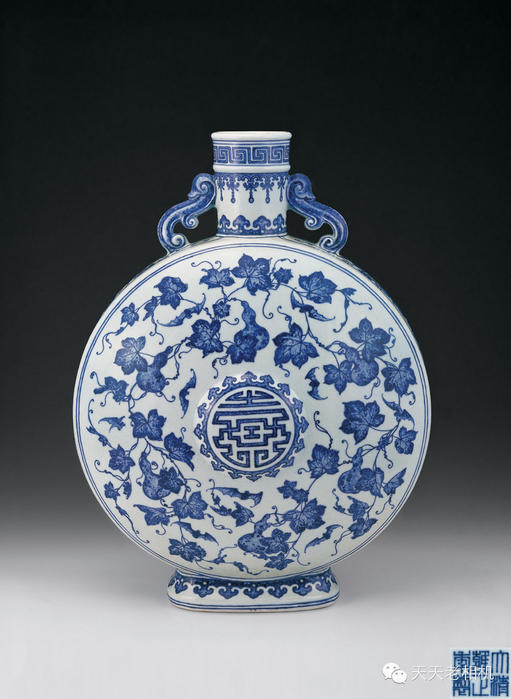 雍正 青花福祿壽扁瓶