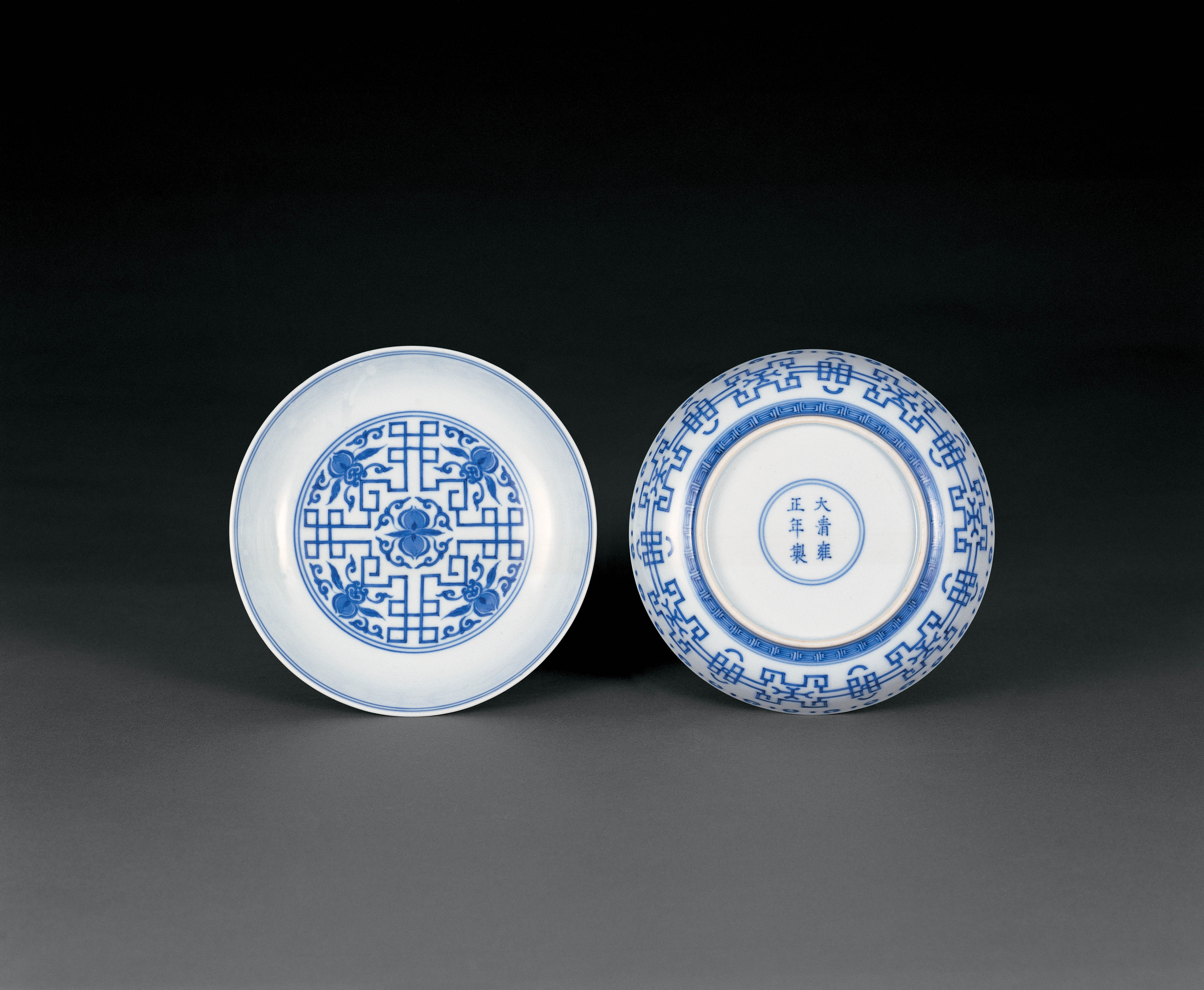 雍正 青花錦桃紋盤(一對)