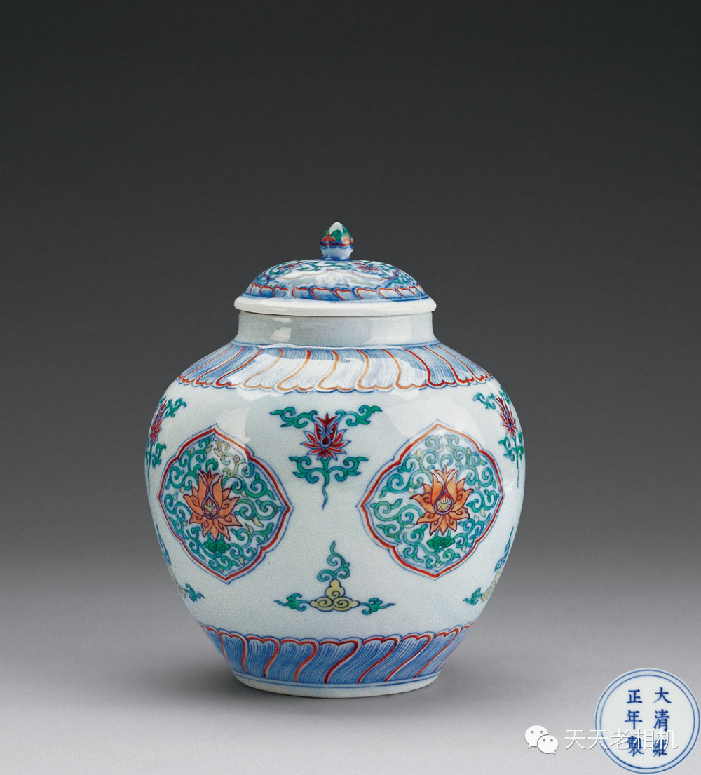 雍正鬥彩開光折枝蓮紋蓋罐