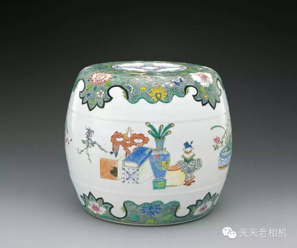 雍正粉彩博古圖繡墩