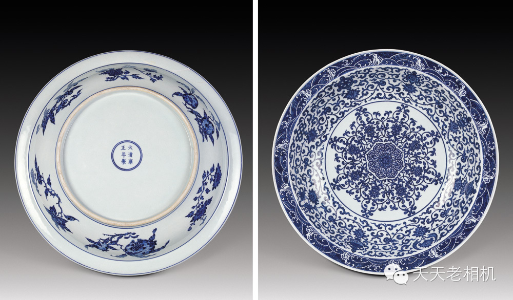 雍正 青花「穿花遊龍」圖大盤