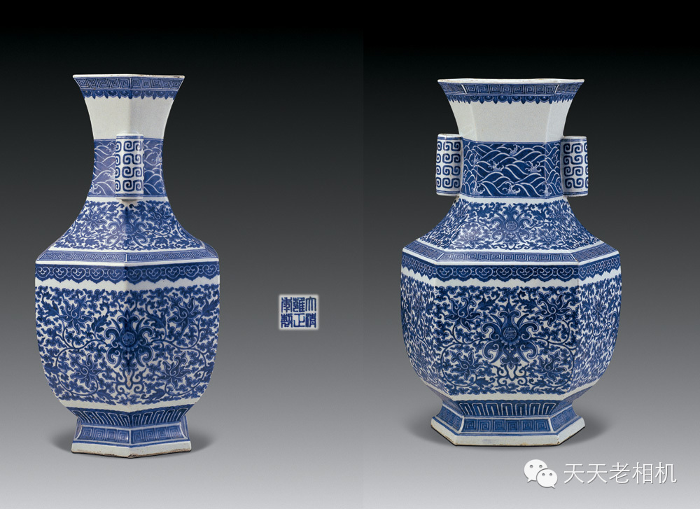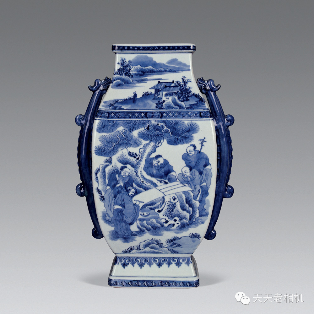 雍正 青花五老圖方瓶