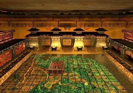 (網絡圖片)神秘莫測的秦陵地宮在司馬遷筆下僅留下極為簡略的記載:“穿三泉,下銅而致槨,宮觀、百官、奇器珍怪徙藏滿之。令匠作機弩矢,有所穿近者輒射之。以水銀為百川、江河大海,機相灌輸,上具天文,下具地理。以人魚膏為燭,度不滅者久之。”考古專家們以此為線索,努力尋找著能揭開秦陵地宮之謎的種種蛛絲馬跡。謎團一:幽幽地宮深幾許?考古勘探資料表明:秦陵地宮東西實際長260米,南北實際長160米,總麵積41,600平方米。秦陵地宮是秦漢時期規模最大的地宮,其規模相當於5個國際足球場。通過考古鑽探進一步證實,幽深而宏大的地宮為豎穴式。司馬遷說“穿三泉”,《漢舊儀》則言“已深已極”說明深度挖至不能再挖的地步,至深至極的地宮究竟有多深呢?神秘的地宮曾引起了華裔物理學家丁肇中先生的興趣。他利用現代高科技與陳明等三位科學家研究撰文,推測秦陵地宮深度為500至1500米。現在看來這一推測近乎天方夜譚。假定地宮挖至1000米,它超過了陵墓位置與北測渭河之間的落差。那樣不僅地宮之水難以排出,甚至會造成渭河之水倒灌秦陵地宮的危險。盡管這一推斷懸殊太大,但卻首開了利用現代科技手段探索秦始皇陵奧秘的先河。國內文物考古、地質學界專家學者對秦陵地宮深度也作了多方麵的研究探索。根據鑽探資料,秦陵地宮並沒有人們想像的那麼深。實際深度應與芷陽一號秦公陵園墓室深度接近。這樣推算下來,地宮坑口至底部實際深度約為26米,至秦代地表最深約為37米。這個數據應當說不會有大的失誤,這是依據目前勘探結果推算的。但是否如此尚有賴於考古勘探進一步驗證。謎團二:地宮設有幾道門?秦陵地宮當年建造了幾道墓門呢?秦陵地宮門道數量問題,其實《史記》中早有答案。隻是未引起學者們的重視罷了。《史記》清楚的記載:“大事畢,已藏,閉中羨,下外羨門,盡閉工匠藏,無複出者。”棺槨及隨葬品全部安置放在中門以內。工匠正在中門以內忙活,突然間“閉中羨門,下外羨門。”工匠“無複出者”,也成了陪葬品。這裏涉及既有中羨門,又有外羨門,其中內羨門不言自明。地宮三道門似乎無可辨駁。值得注意的是司馬遷中羨門用了個“閉”字,外羨門則有了個“下”字,說明中羨門是可以開合的活動門。謎團三:“上具天文”作何解釋?秦陵地宮“上具天文,下具地理”的記載出自《史記》,其含義是什麼?著名考古學家夏鼐先生曾推斷:“‘上具天文,下具地理’應當是在墓室頂繪畫或線刻日、月、星象圖,可能仍保存在今日臨潼始皇陵中。”近年來,西安交大漢墓發現了類似於“天文”“地理”的壁畫。上部是象征天空的日、月、星象,下部則是代表山川的壁畫。由此推斷,秦陵地宮上部可能繪有更為完整的二十八星宿圖,下部則是以水銀代表的山川地理。在這座有著象征天、地的地下“王國”裏,秦始皇的靈魂照樣可以“仰觀天文,俯察地理”,統治著這裏的一切。謎團四:地宮埋“水銀”之謎始皇陵以水銀為江河大海的記載見於《史記》,《漢書》中也有類似的文字。然而,陵墓中究竟有沒有水銀始終是一個謎。現代科技的發展為驗證秦陵地宮埋水銀這一千古懸案提供了必要的前題條件。地質學專家常勇、李同先生先後兩次來始皇陵采樣。經過反複測試,發現始皇陵封土土壤樣品中果然出現“汞異常”。相反其它地方的土壤樣品幾乎沒有汞含量。科學家由此得出初步結論:《史記》中關於始皇陵中埋藏大量汞的記載是可靠的。現代科技終於解開了地宮埋“水銀”的千古謎案。至於地宮為何要埋入大量水銀?北魏學者酈道元的解釋是“以水銀為江河大海在於以水銀為四瀆、百川、五嶽九州,具地理之勢。”原來是以水銀象征山川地理,與“上具天文”相對應。謎團五:地宮珍寶知多少?“奇器珍怪徙藏滿之”一語出自司馬遷筆下。早於司馬遷的大學者劉向也曾發出過這樣的深切感歎:“自古至今,葬未有如始皇者也。”那麼,這座神奇的地宮珍藏了哪些迷人的珍寶呢?《史記》明文記載的有“金雁”、“珠玉”、“翡翠”等。其它還有什麼稀世之寶誰也不清楚。不過80年代末考古工作者在地宮西側發掘出土了一組大型彩繪銅車馬。車馬造型之準確,裝飾之精美舉世罕見。之前,考古工作者還發掘出土了一組木車馬,除車馬、禦官俑為木質外,其餘車馬飾件均為金、銀、銅鑄造而成。地宮外側居然珍藏了如此之精美的隨葬品,那麼,地宮內隨葬品之豐富、藏品之精致是可想而知的。謎團六:秦始皇使用銅棺還是木槨?秦始皇使用什麼樣的棺槨?《史記》、《漢書》均未明確記載。司馬遷隻留下一句“下銅而致槨”的含糊記錄。於是有學者據此得出秦始皇使用的是銅棺。但從文獻記載而言,秦始皇未必使用的是銅棺。《史記》、《漢書》明文記載:“冶銅錮其內,漆塗其外。”“披以珠玉,飾以翡翠”,“棺槨之麗,不可勝原。”這裏“漆塗其外”、“飾以翡翠”的棺槨恐怕隻能是木質的了。如果是銅棺或石棺肯定用不著土漆塗其外,而隻有木棺才可能使用土漆。從先秦及西漢的棺槨製度考察,使用“黃腸題湊”的大型木槨是當時天子的特權。自命功勞大過三皇五帝的秦始皇不可能放棄“黃腸題湊”的木槨而改用其它棺槨。謎團七:地宮有沒有空間?目前考古勘探表明,秦陵地宮為豎穴式。墓內可能有“黃腸題湊”的大型