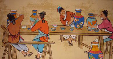 點藍,將琺琅釉料填涂在掐絲縫隙中。