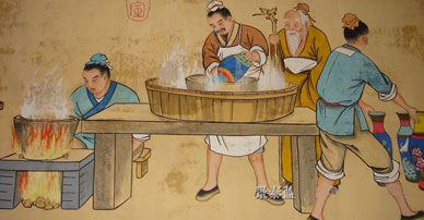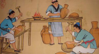 制胎,將裁剪好的銅板經過敲打初步制作成需要的胎型,並燒焊起來。