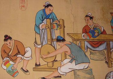 磨光,將經過燒藍過后的景泰藍制品外表的琺琅釉料打磨光亮。