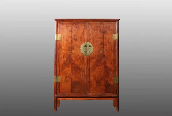 頂箱櫃是中式家具中的大件。出現在明後期,盛于清代。由頂櫃和底櫃兩部分組成,可爲一對組合排放,也可拆分爲左右各一。因明式頂箱櫃多爲黃花梨制作,其將明式家具簡潔的工藝特點表現得淋漓盡致。清代頂箱櫃多爲紫檀櫃。當代仿明式頂箱櫃一般用黃花梨或香枝木制成。