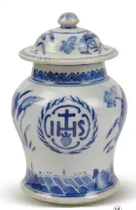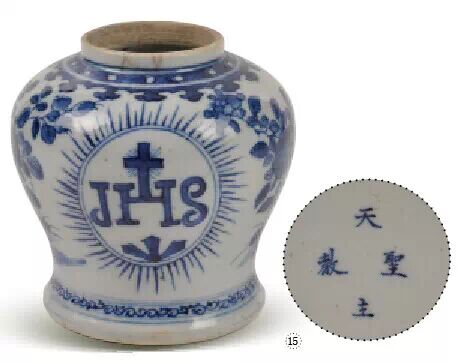 耶穌會標志的正确寫法是“IHS”。但我們看到有些瓷器上寫的是“JHS”,或為工匠繪制時的失誤所致。