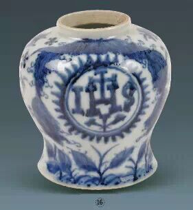 清景德鎮窯青花花卉紋耶穌會罐及底款