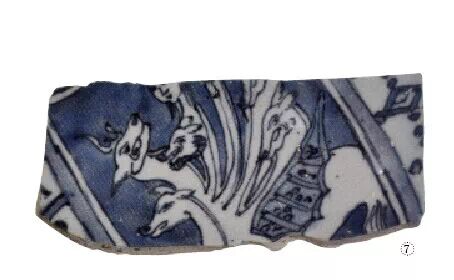 澳門博物館收藏的當地出土的克拉克瓷均為景德鎮產品,年代為明萬曆年間。克拉克瓷器中有一個非常特別的紋飾,俗稱“七頭蛇”,見于萬曆青花制品。目前所見只有几件,分別收藏于大英博物館、美國皮波迪艾塞斯博物館(Peabody