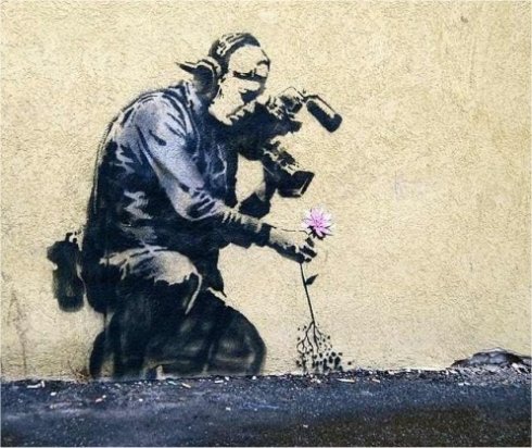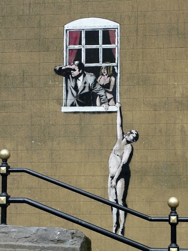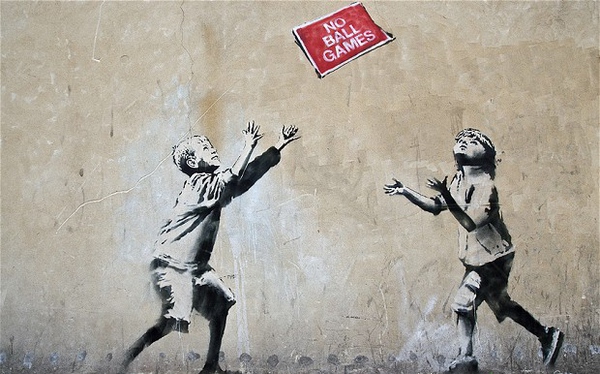 Blur 《Think Tank》 藝術家:Banksy這張帶有反戰意味(一對兒戴著毒氣麵罩的情侶)的塗鴉作品出自英國最著名的塗鴉藝術家班克西之手。他直到現在還依然為了躲避警察而進行著“塗鴉遊擊戰”。他的作品多與反戰、反權威等訴求有關,圖案旁配有戲謔的文字,比如他曾在倫敦最著名的美術館門外台階上寫了句“小心垃圾”。可以說是英國街頭最有名的“幽靈”。