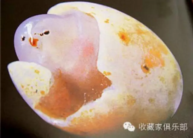 瑪瑙石小雞出殼也可叫雛雞出殼,現收藏於北京朝陽區人民政府,小雞出殼為天然瑪瑙奇石。此石似一隻色澤淡黃毛茸茸的小雞從蛋殼內向外張望伸頭欲出,形象逼真,色澤艷麗,小雞出殼”整體的造形以及局部的體態都與實物相仿。這塊奇石被專家評估為1.3億元。