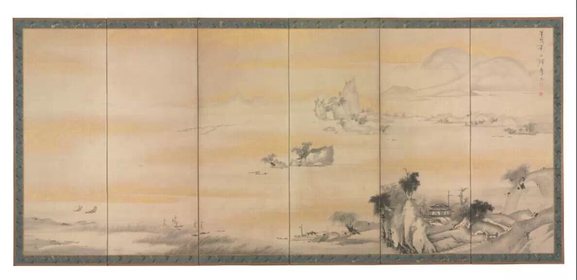 日本曾我蕭白(1730-1781)水墨金箔紙本六折屏風一對154.3 x 358.8 cm