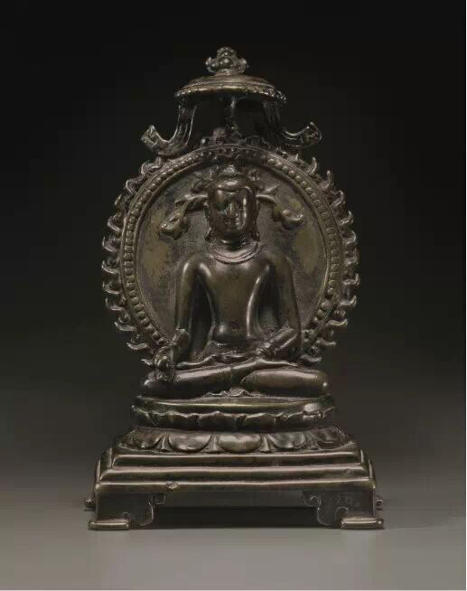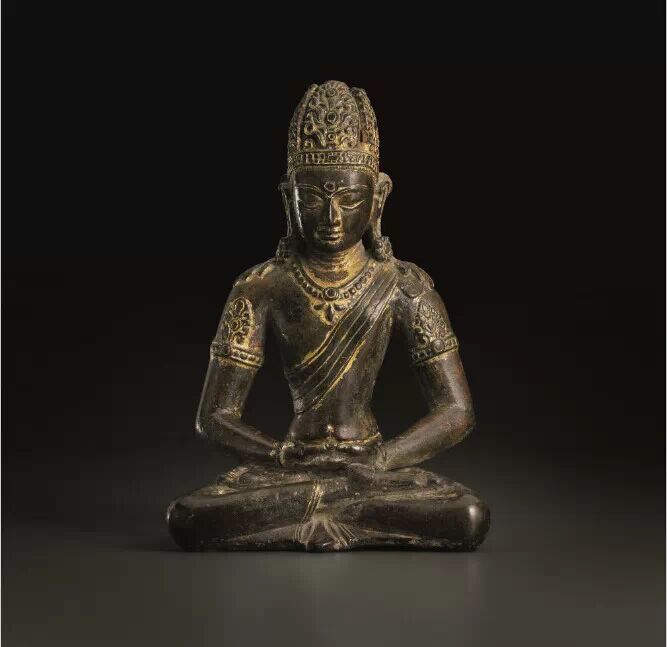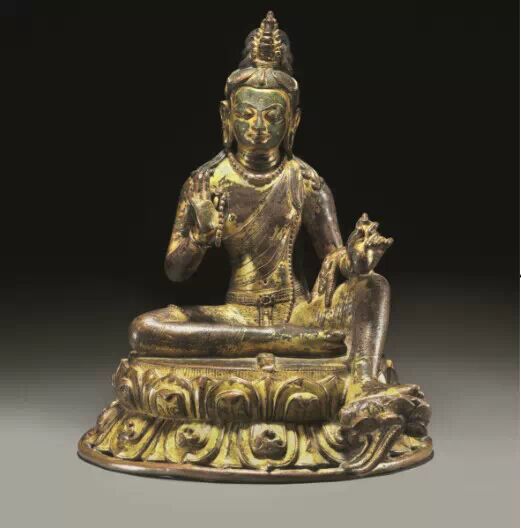 尼泊爾尼波羅王朝九/十世紀鎏金銅彌勒佛坐像高:28 cm