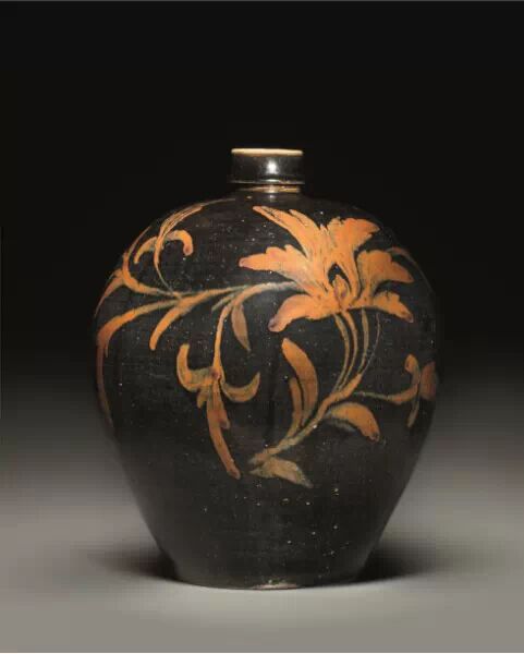 金/元磁州窯系黑釉鐵銹花卉紋小口瓶高:40.6 cm