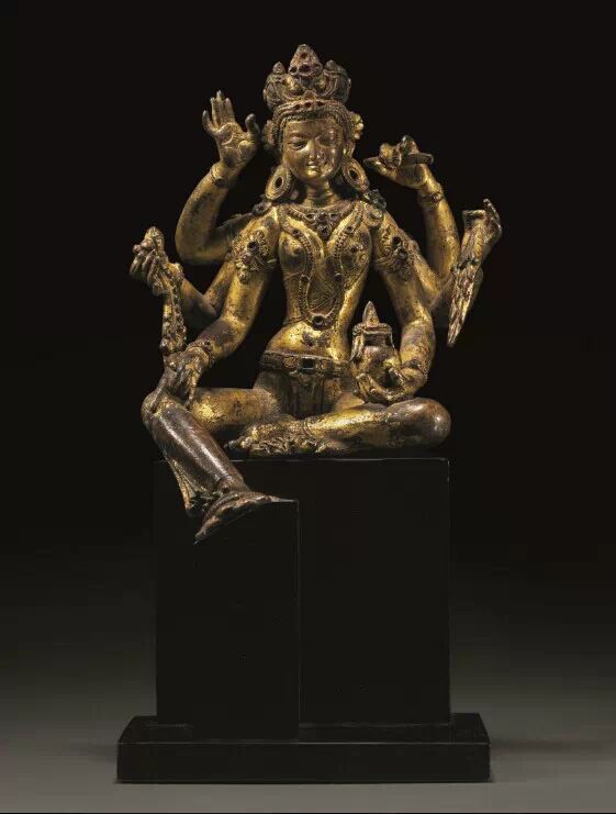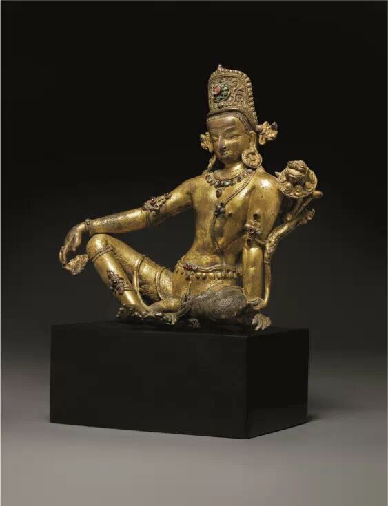 尼泊爾十二/十三世紀鎏金銅財源天母坐像高:20 cm