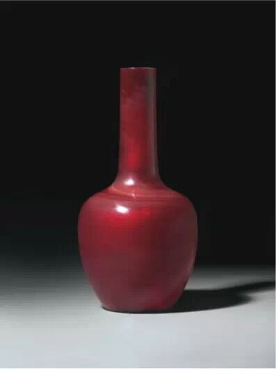 清雍正透明寶石紅玻璃長頸瓶方框《雍正年製》楷書刻款高:13 cm