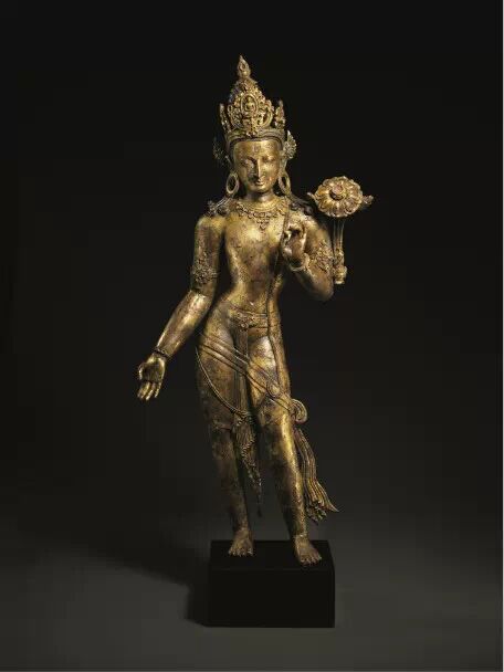 尼泊爾十三世紀鎏金銅觀音立像高:63 cm