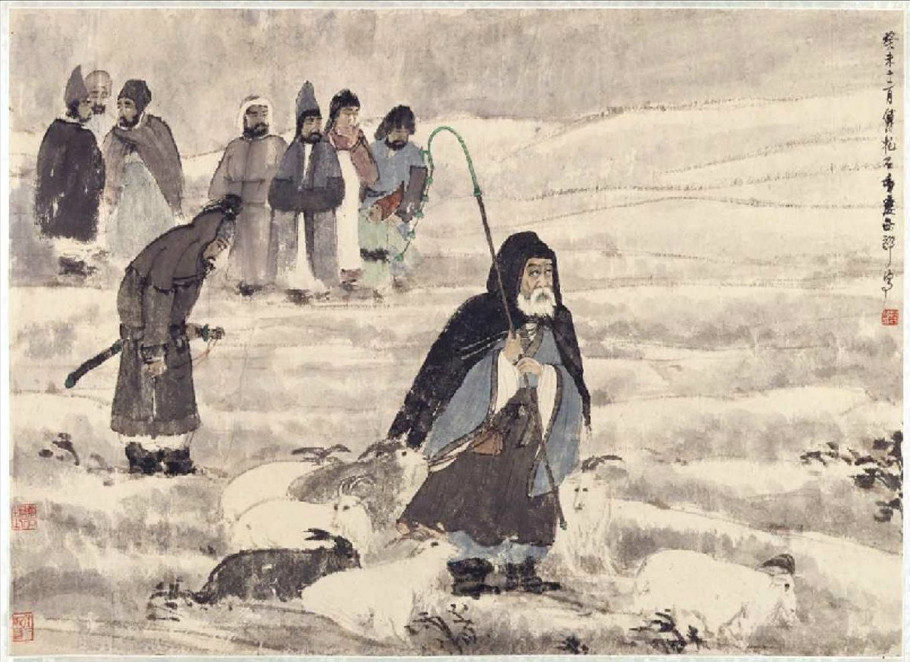 傅抱石蘇武牧羊圖62×84. 8cm 紙本設色北京故宮博物院藏