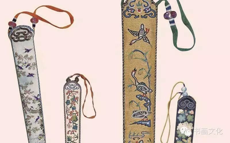 清代刺繡小品用料以絲綢為主,一般以優質綢、緞、紗、織金緞、天鵝絨作繡地,用得最多的是緞類。清 扇套![]()