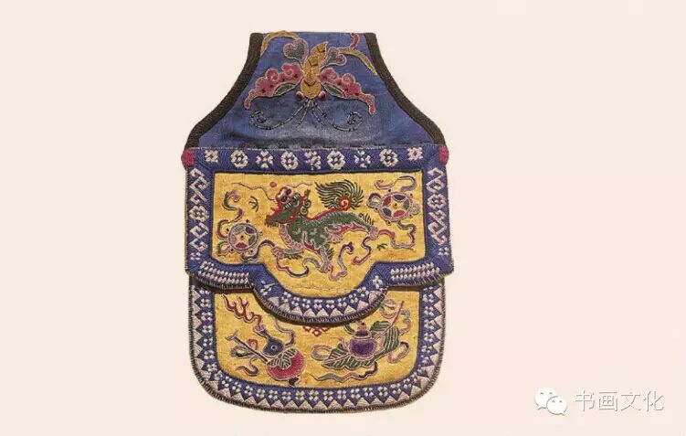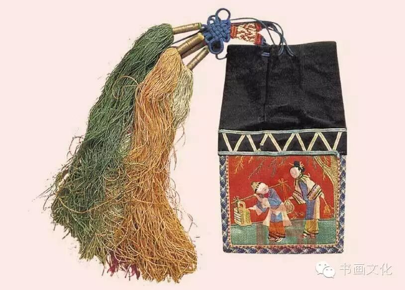 褡褳是長方形中間開口,在開口處對疊,可係於腰帶上貯放錢票等用的物件,表麵繡花,有的褡褳還鑲有鏡子。清 褡褳![]()