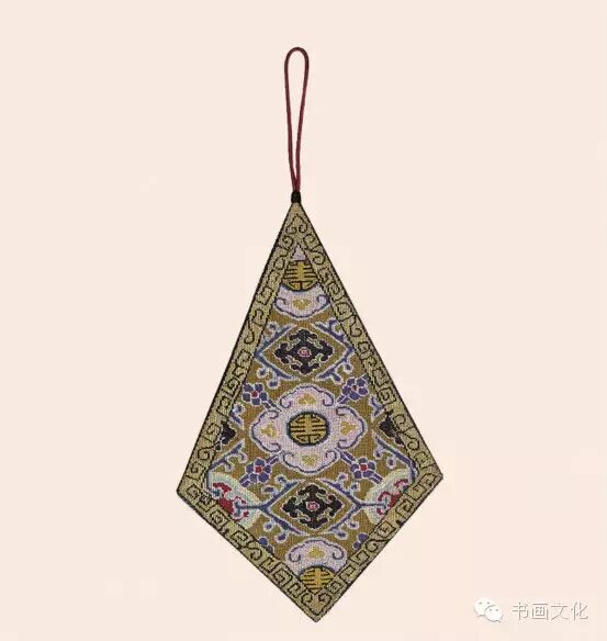 清代宮中除大婚時需用繡花荷包外,其餘喜事節日則需按例分賞荷包。所以內廷衣褲,需備一定數量的荷包。清代荷包和香囊用途大抵相同,香袋香囊專為盛放香料之用,但形狀有別,香袋是由一底一蓋串於絲帶上,蓋可拉開存取香料;香囊是將香料縫合於囊中,不分底、蓋。清 白紗地鋪絨繡龜背紋荷包