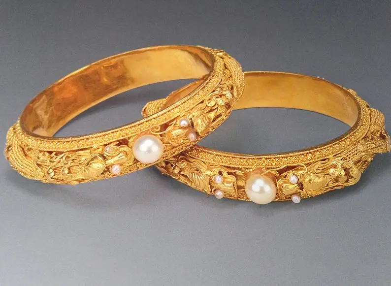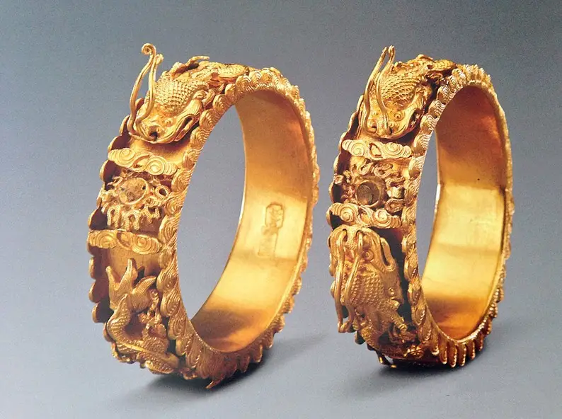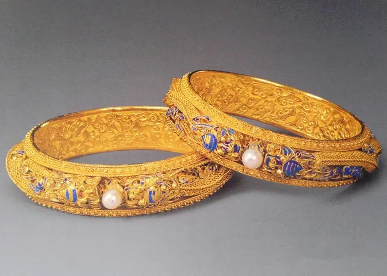 手鐲,又被稱作釧、跳脫。清宮舊藏的鐲子有圓條鐲、扁口鐲、扁平鐲、串珠軟鐲等。