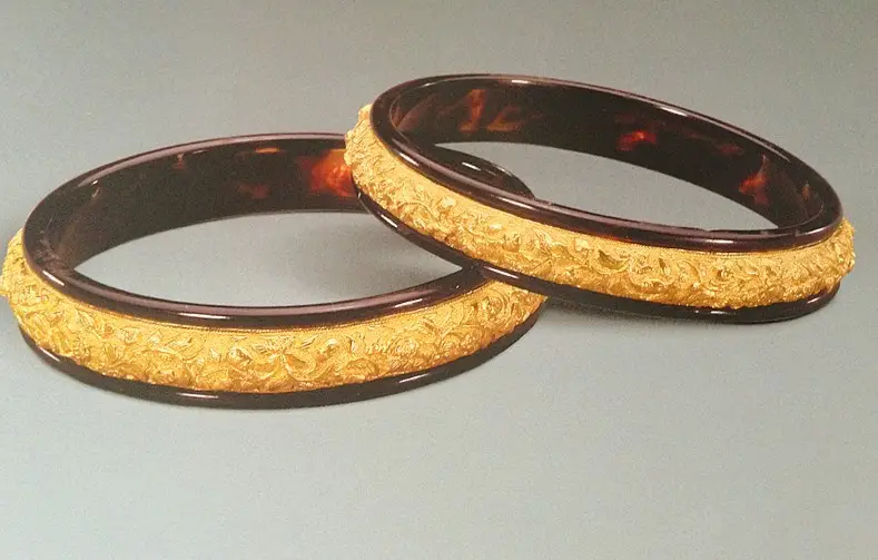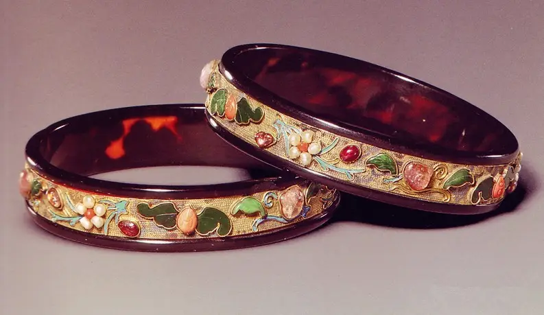 手鐲的選材囊括了金銀、珊瑚、翡翠、玳瑁、珍珠、白玉、碧璽、伽南香等多種材質。