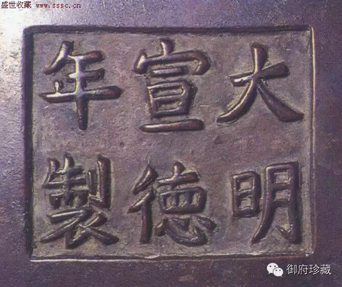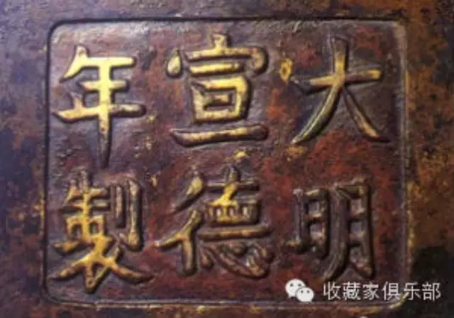 (四)後代仿製:宣德以後歷朝均有仿造者,也有私家製作的,萬曆天啟年間京師(北京)學道及施家所造稱為北鑄;金陵(南京)甘家(甘文堂)所造稱為南鑄。另有蘇州蔡家所造稱為蘇鑄最富盛名。渠等雖因間有質高火到,款色俱佳者,但施家爐體多厚重,甘鑄多薄壁,常為鑒賞家所詬病,此外尚有周文甫、張鳴岐、王鳳江、胡文明、徐守素、王常、湯子祥、石叟等都是明代鑄銅名手,所製作品充斥市場,難怪明代末年,〈改過齋雜記〉謂:「宣德年鑄薰爐,海內所珍,今多贗物,真者百之一耳,市者一爐索數十金,卒難得其佳者」,可以明白。
