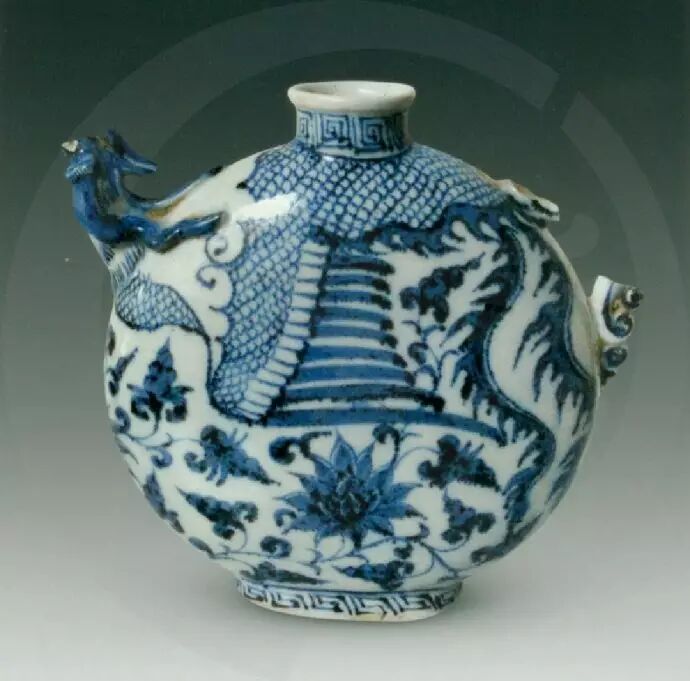 青花鳳首扁壺