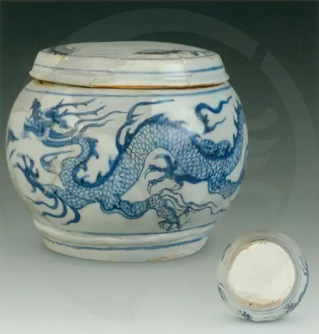 青花五爪雙龍趕珠紋蓋