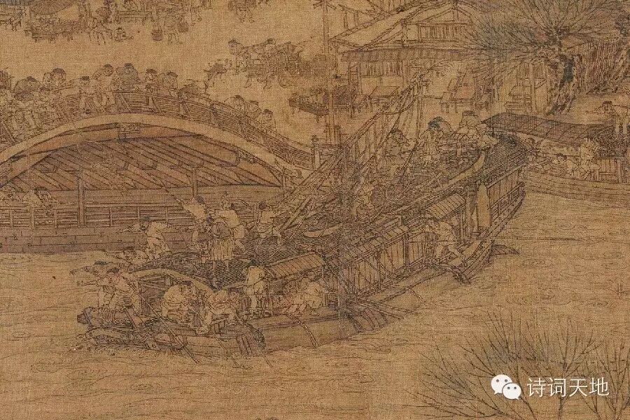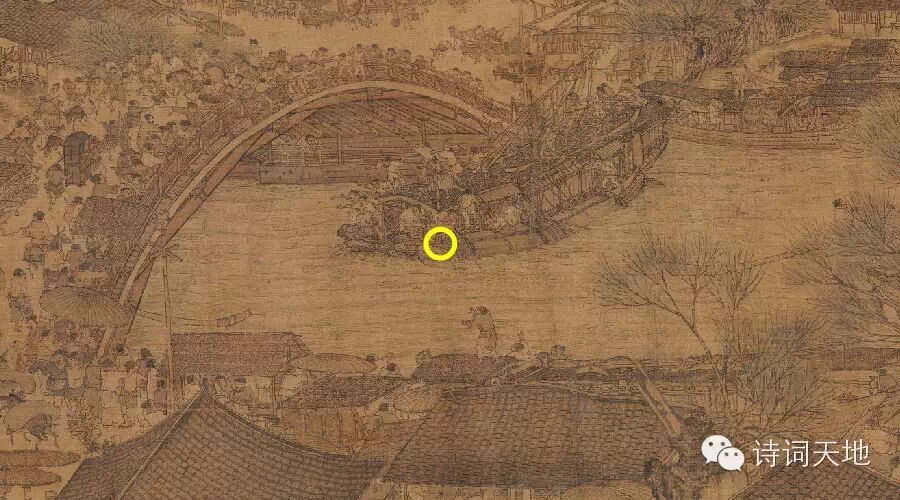 這場對峙同樣位於畫眼位置,自然也絕不是隨手而畫。它充滿了寓意——河中那隻客船由於眾人的玩忽職守而陷入危機,橋上這兩撥人的對峙,卻顯然是意氣之爭,亦如北宋政府官員黨同伐異,百餘年間持續不休的內鬥內耗。