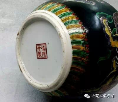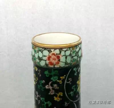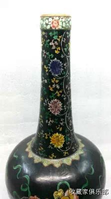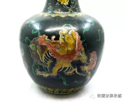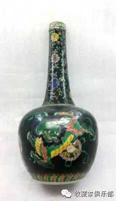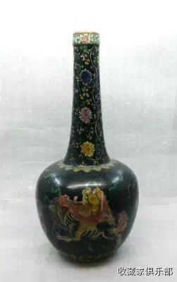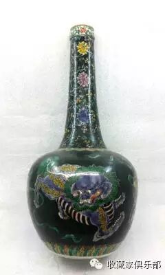 清“慎德堂制”款 墨地五彩麒麟紋長頸瓶