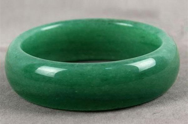 玉(指軟玉中之碧玉)在一般情況下較容易與翡翠區別。但上好碧玉其顏色、硬度、比重等與翡翠相差不大,容易混淆。主要區別;①碧玉無雪片、蚊子翅等翠性表現;②翡翠一般不帶黑點,有黑點時,亦多呈圓形點狀。碧玉卻很少不帶墨點,且形狀多為不規則棱角形;③翡翠顏色艷綠,碧玉顏色多顯悶滯,無祖母綠色調。翡翠具有色形色源,而且有綠筋;碧玉顏色較為均勻,無色形色源;④翡翠底張多顯晶靈有神,而碧玉質地則感勻潤而性柔。