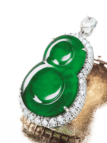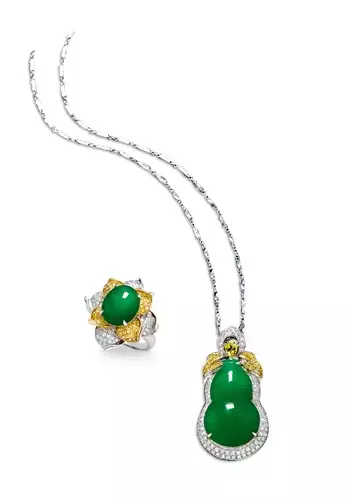 冰種滿綠翡翠“葫蘆”吊墜、戒指套裝