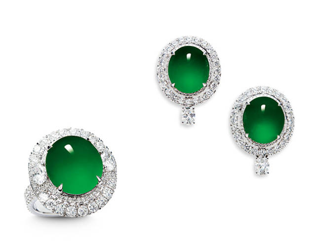 帝王綠翡翠項鏈、戒指、耳環套裝