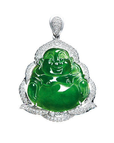 老坑玻璃種帝王綠翡翠“發財”吊墜