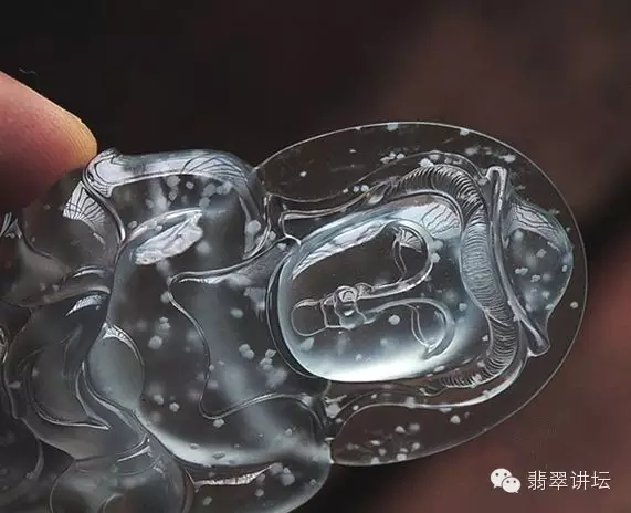 我覺得底子可以用純,清,細來形容。化底的料,底子比較干凈沒什麼棉和雜質的,那叫純!這個可以出現在糯種或者糯化底上。另外一種的底子雖然是有棉,但是有一種清透感,這個叫剛,是一種冷的清透感,這個做清,底子越清就越有冷感鋼性。就像冬天山溪的水,發出一種帶寒氣的清透。或者是冰融化時那種清透感。四會這邊的福建人叫這樣的料子做起冰的料。相反,那些底子只有純沒有冰感的料,叫:蒙。這類的料子多數是沒棉,底子比較純,賣點在于“沒棉”。回頭再來說說這兩種底子的區別:一種是沒棉,底子純的料,一種是起冰帶冷感有棉的料,在選擇翡翠上很多外行的人會選擇沒棉底子純的料,多數人認為棉就是翡翠瑕疵里的一種,認為沒棉就是好。但是如果一個懂翡翠的人來選,他可能會選起冰帶剛性有棉的料子,而不選純的料。請容我用事例証明