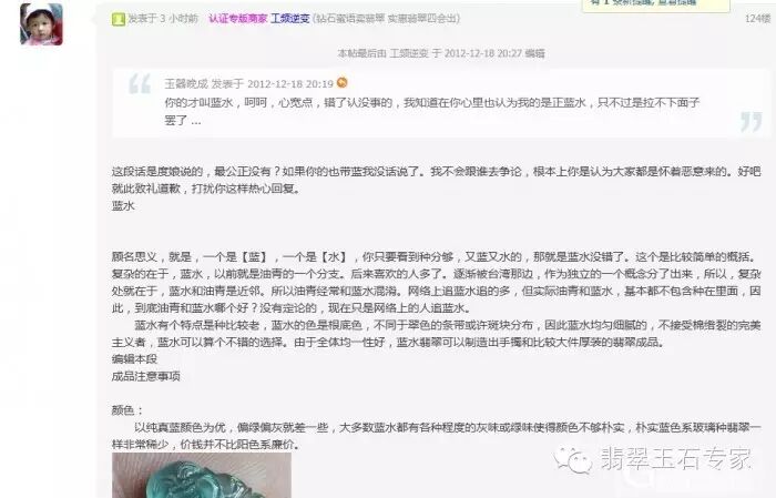 (3)藍水有個特點是種比較老,藍水的色是根底色,不同于翠色的條帶或許斑塊分布,因此藍水均勻細膩,基本沒有花飄出。