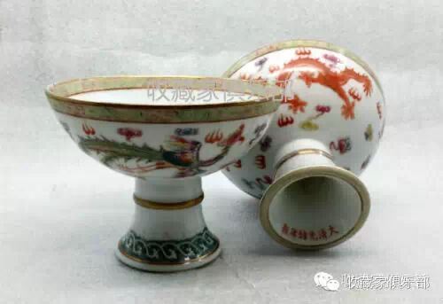 ●【藏友藏品推介】清光緒 粉彩龍鳳紋高足碗一對(官窯)