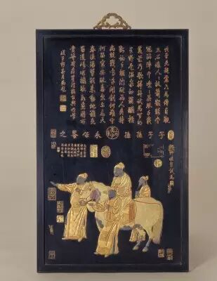 50.黑漆描金《明皇試馬圖》挂屏 清乾隆