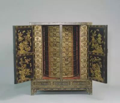 23.黑漆描金雙龍紋葯柜 明萬曆