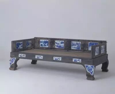 35.黑漆嵌瓷山水圖床 清初期