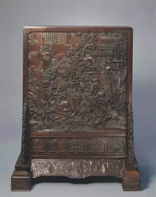 32.黃花梨仕女觀寶圖插屏 清