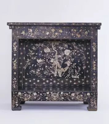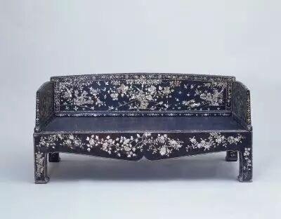 20.黑漆嵌螺鈿花鳥羅漢床 明