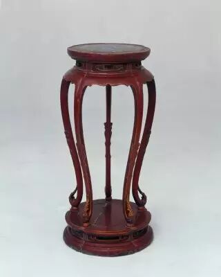 6.紅漆嵌琺琅面梅花式香几 明